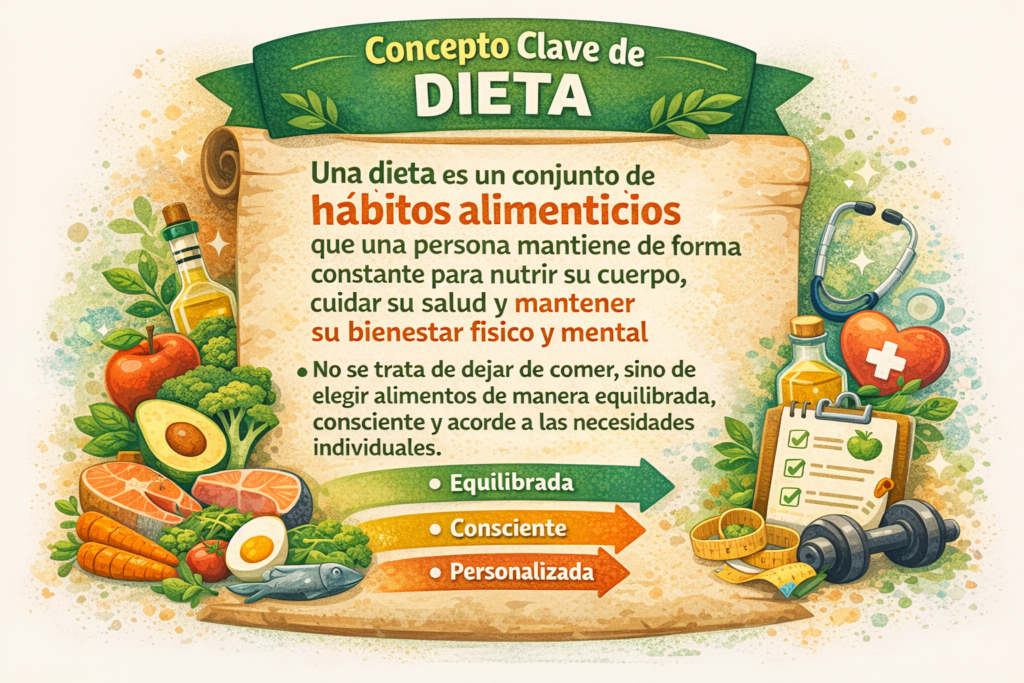 Una dieta es un conjunto de hábitos alimenticios que una persona mantiene de forma constante para nutrir su cuerpo, cuidar su salud y mantener su bienestar físico y mental. No se trata de dejar de comer, sino de elegir alimentos de manera equilibrada, consciente y acorde a las necesidades individuales.